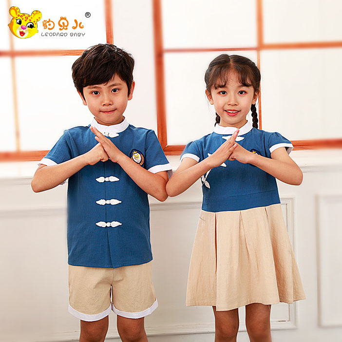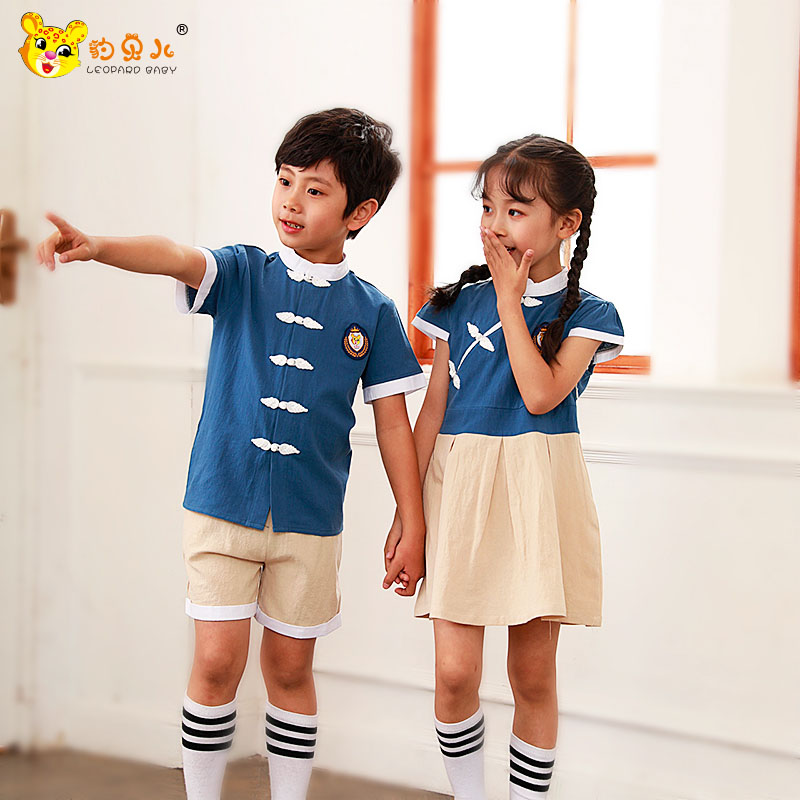 幼儿园园服夏装新款民国风中国风国学服演出服汉服诗词朗诵服装幼儿园免费定制logo